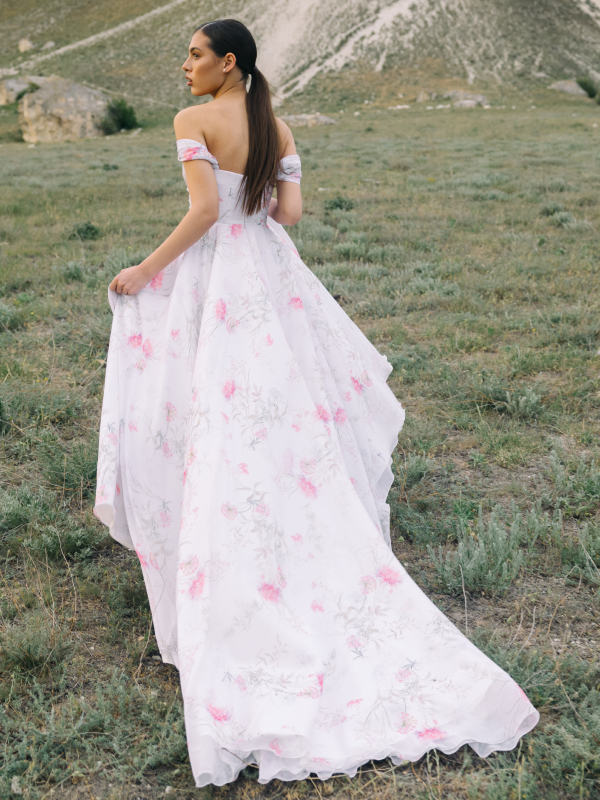 Once the concept is defined, our atelier selects premium fabrics and materials that complement the structure and movement of the dress. Each piece is handcrafted by skilled artisans, with careful attention to seams, proportions, and finishing details.